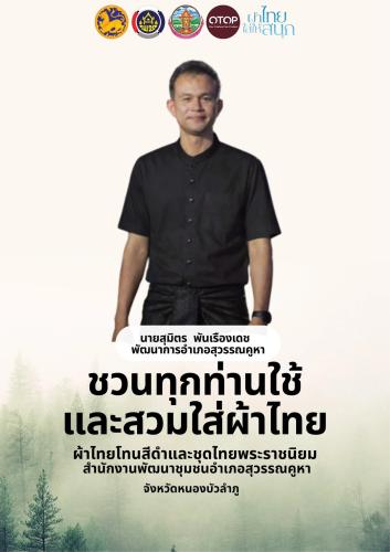 "ผ้าไทย" ไม่ใช่แค่เครื่องแต่งกาย แต่คือมรดกทางวัฒนธรรมและภูมิปัญญาที่ส่งต่อกันมาอย่างทรงคุณค่า นายสุมิตร พันเรืองเดช พัฒนาการอำเภอสุวรรณคูหา ขอเชิญชวนทุกท่านมาร่วมเป็นส่วนหนึ่งในการสนับสนุนและสวมใส่ผ้าไทยในชีวิตประจำวัน